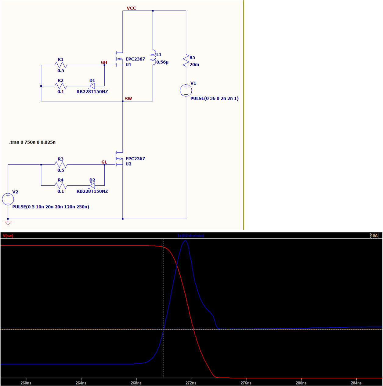 Hi, You state that GaN MOSFET has no reverse recovery current. I am using a simple buck converter circuit to simulate the behavior of this GaN MOSFET and compare it to a normal MOSFET. I am using Simetrix and your SPICE model for EPC2001. Simulation does show reverse recovery current even bigger than common MOSFET (ISC230N10NM6). Could you, please, explain this.